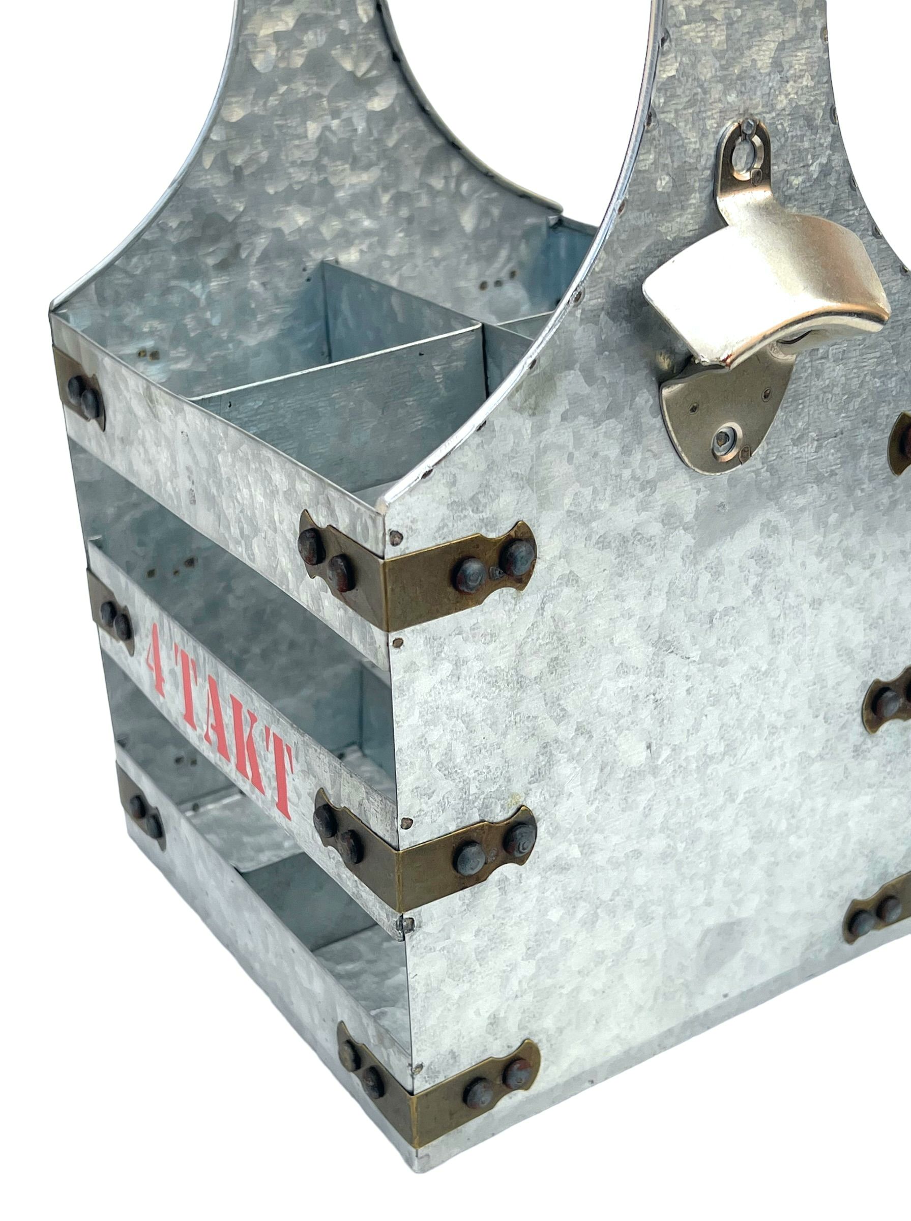 The DanDiBo metal wine carrier with bottle opener and 4 bar lettering on both sides is perfect for any garden party, picnic, BBQ or outing.