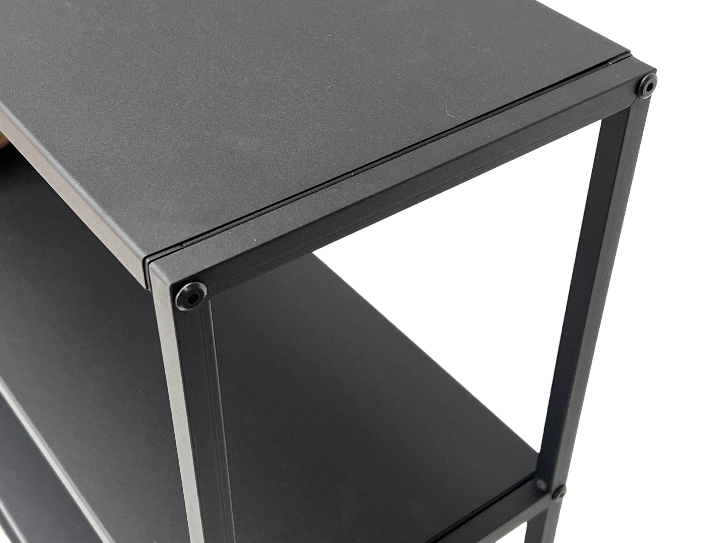 MODERN DESIGN - The black colour gives this powder-coated standing shelf a timeless elegance that suits various interior styles. Whether modern, classic or minimalist - this shelf will complement your interior in a stylish way.
