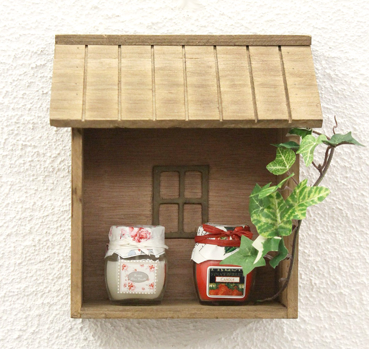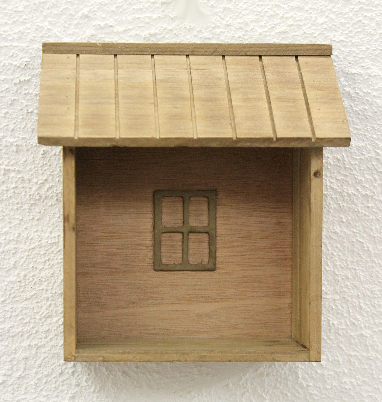 Very decorative wall shelf. Made of wood and stained brown. Dimensions: Height approx. 22 cm, width approx. 20 cm, depth approx. 8 cm. Box inside: W 15 cm, H 15 cm.