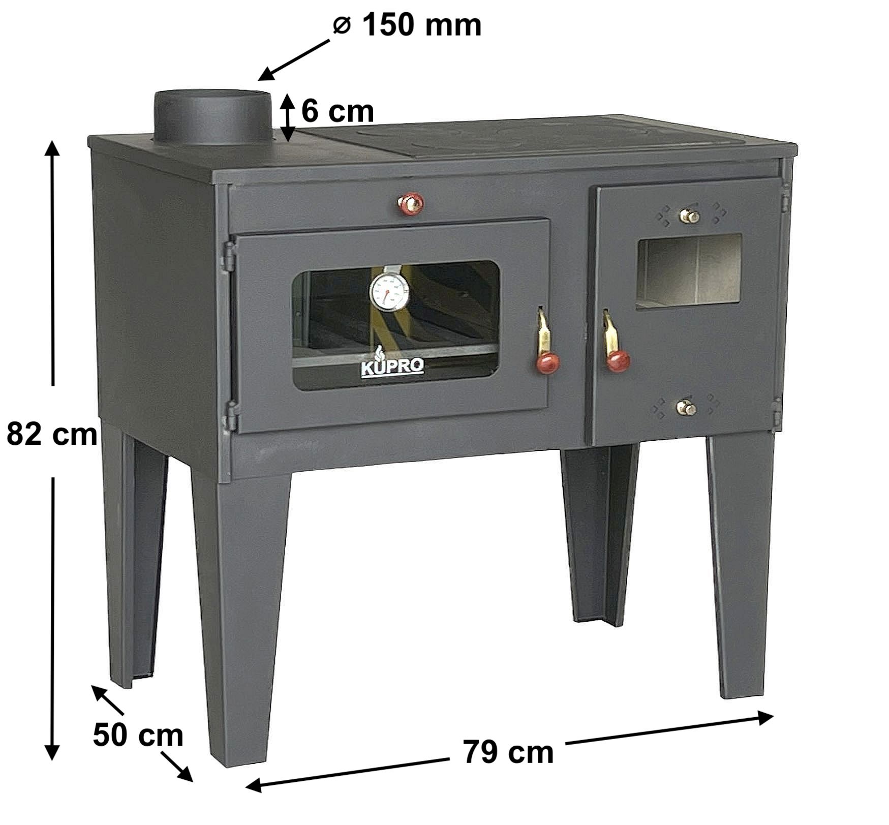 - Diameter hearth plates: 1x 20 cm (cast iron), 2 x 13 cm (cast iron)