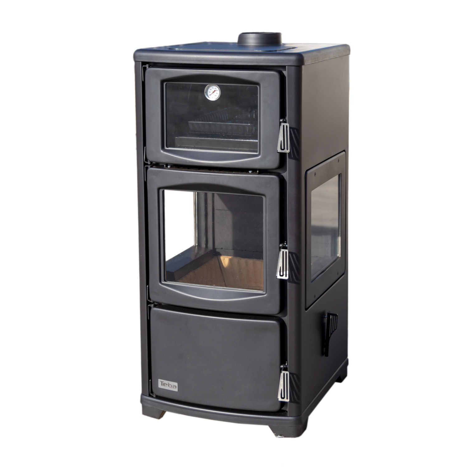 The design of the Teba stoves enables precise control of the temperature intensity and easy combustion and ash cleaning.