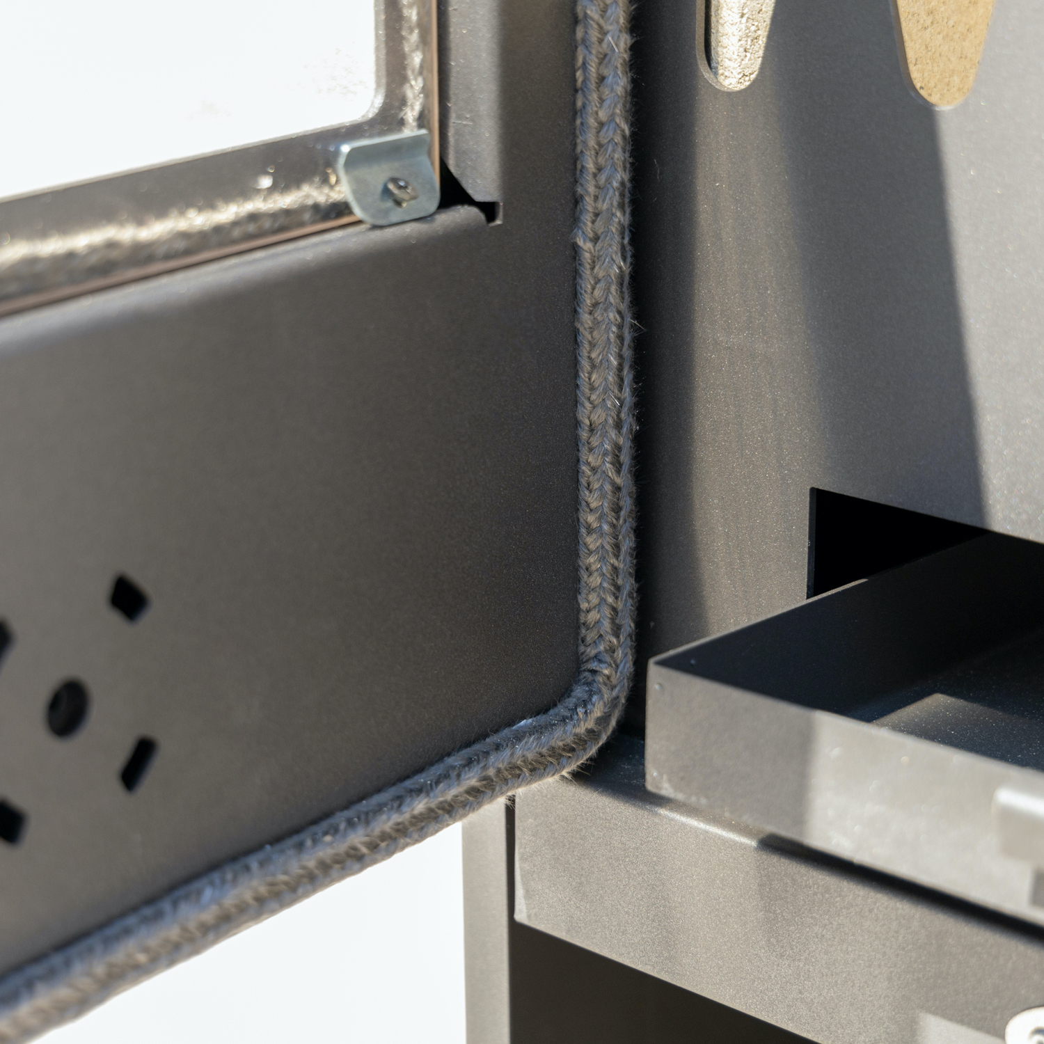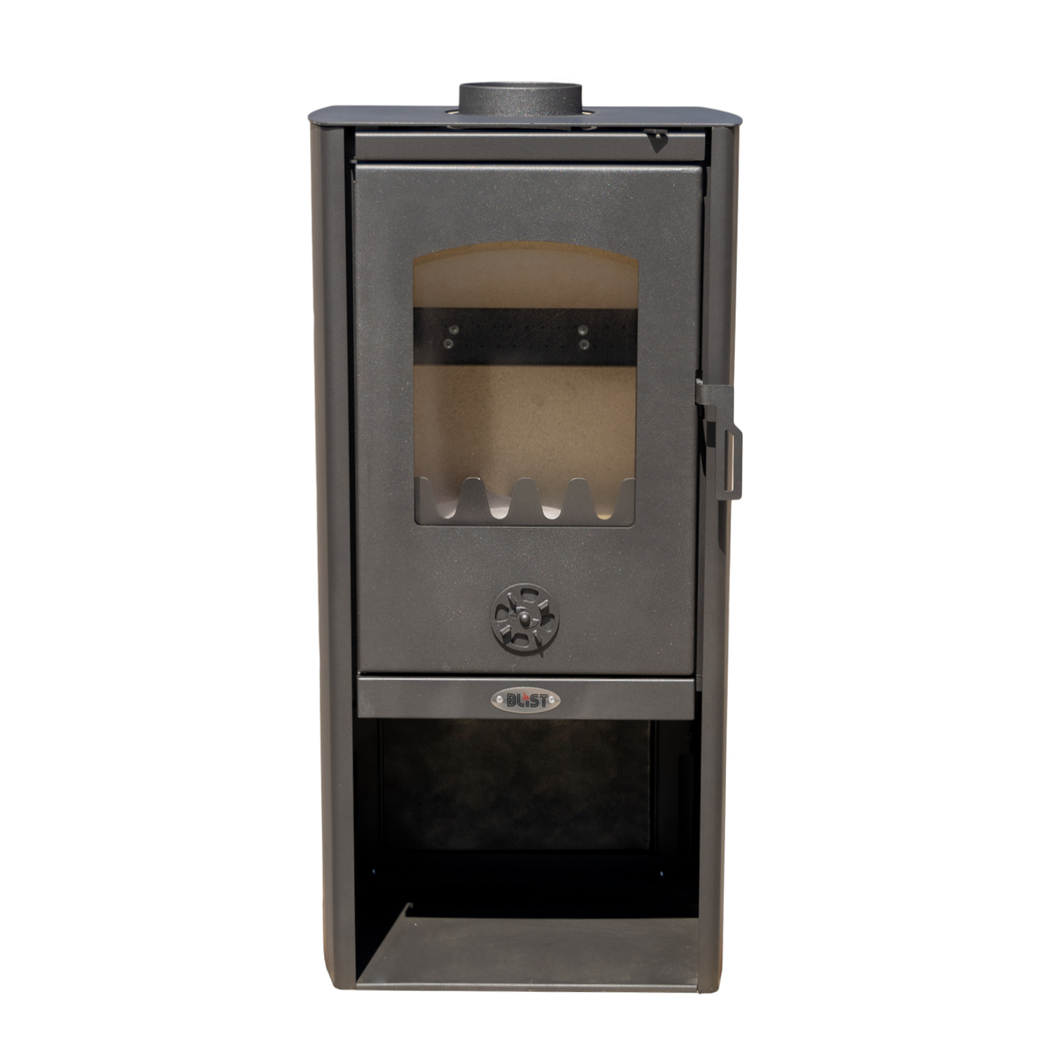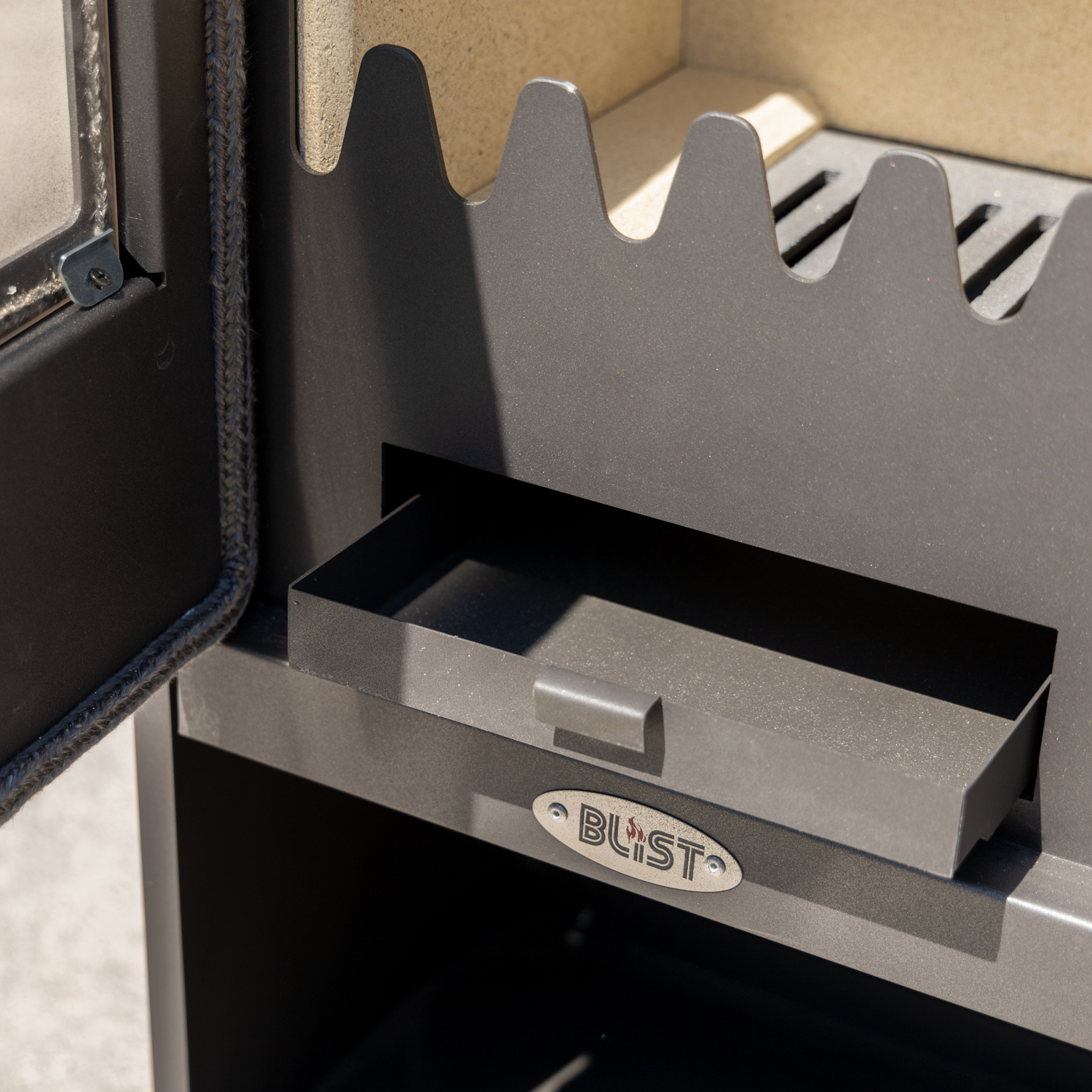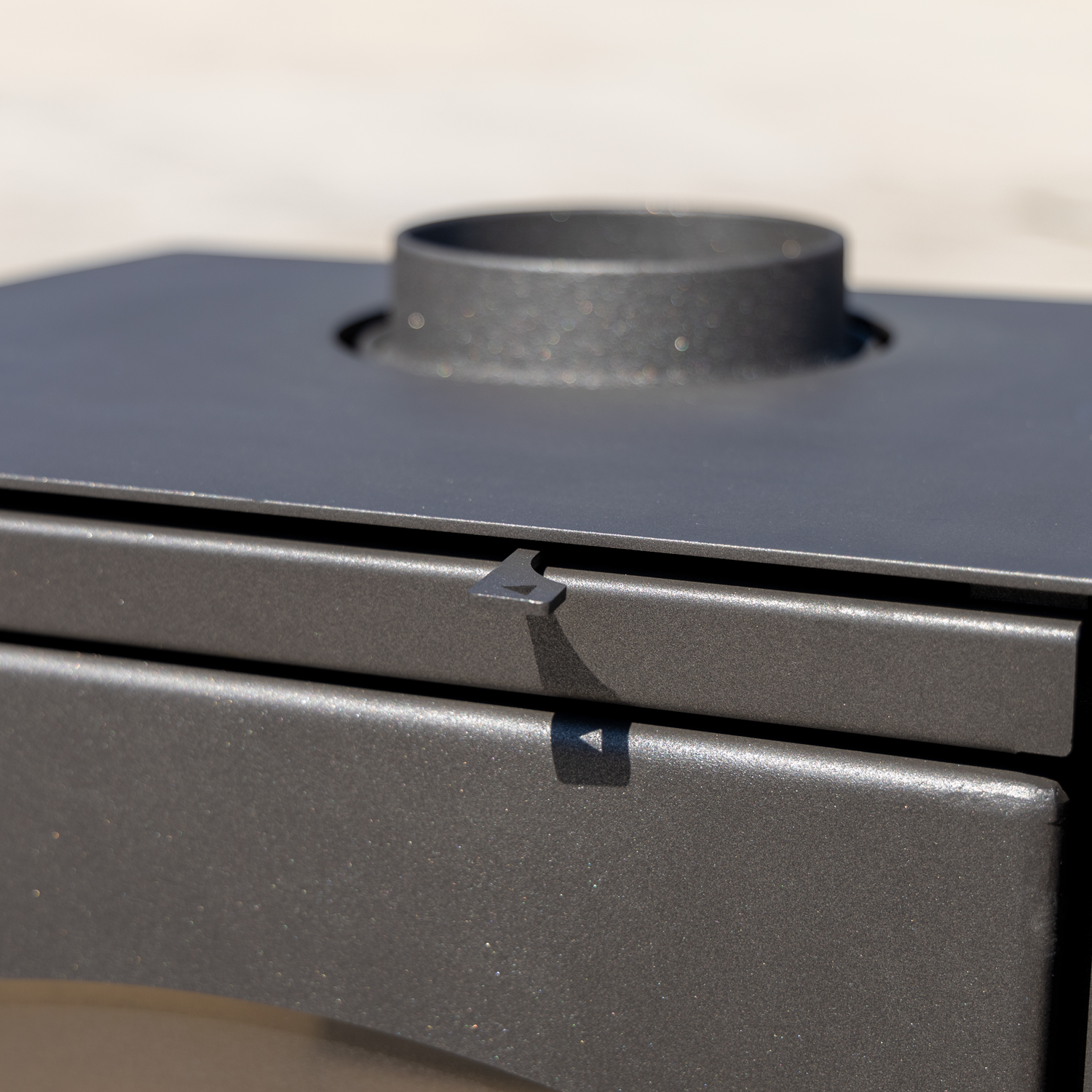 Combustion chamber lined with fireclay brick. Integrated viewing window. Removable ash compartment.