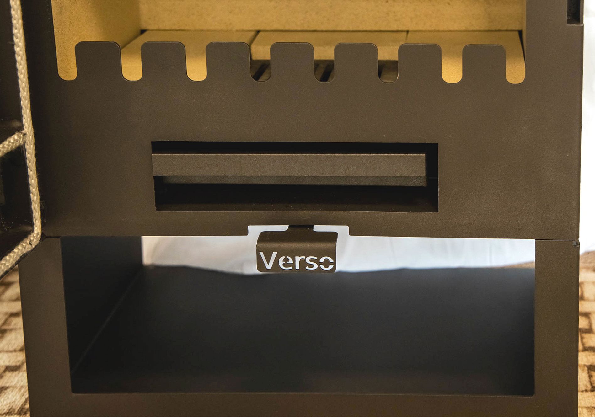 Integrated viewing window for observing the flame. Removable ash compartment.
